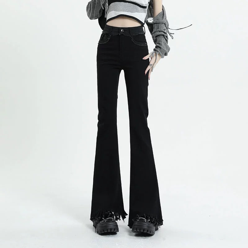 欧米ハイストリート混合色ファーフレアジーンズ女性ハイウエスト着痩せゆったりストレートワイドパンツ番号ZT410