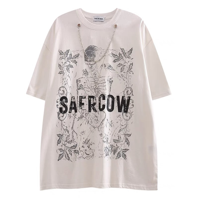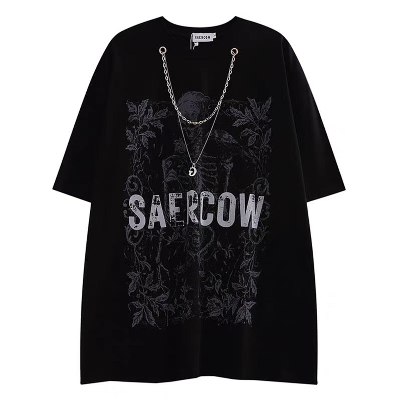 欧米ハイストリート西海岸ビンテージスカルダークブラック系トレンドブランドヒップホップチェーン男女半袖Tシャツトレンド番号ZT536