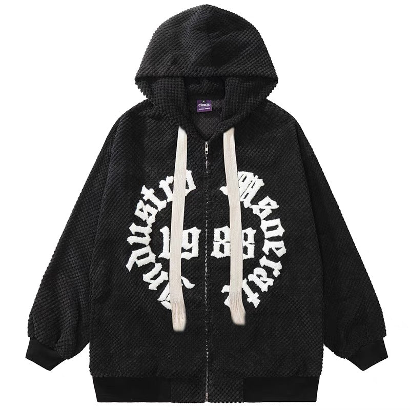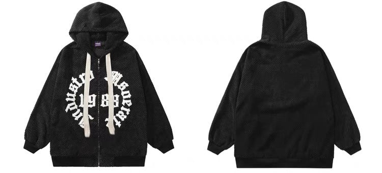 欧米ヒップホップアルファベットフロッキーカーディガンフード付きスウエットパーカー男女トレンドブランドゆったりカップルカジュアルコート番号ZT526
