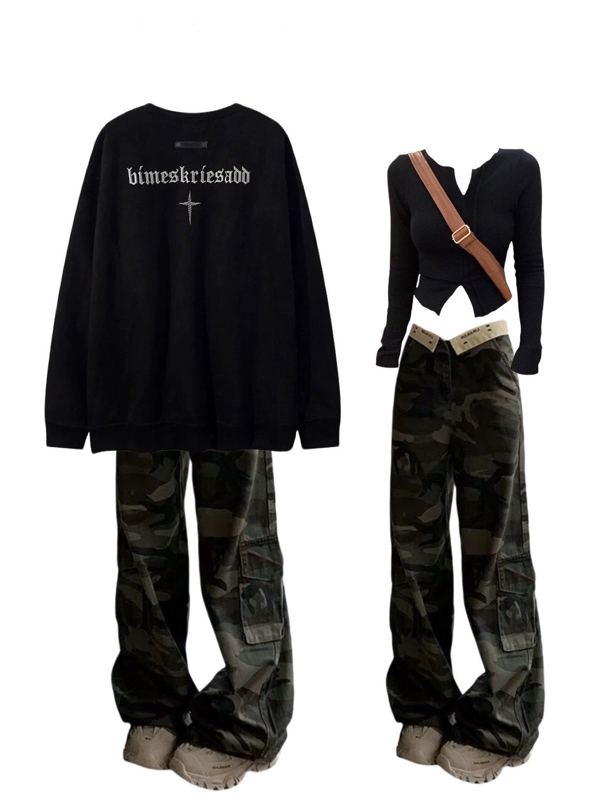 欧米ヒップホップアルファベット刺繍服男性ゆったりカップルカジュアルコーディネート自在上着 アメリカン迷彩カーゴパンツレディースビンテージ折り返しワイドパンツロングパンツ夏ハイウエストカジュアルパンツ番号 ZT478