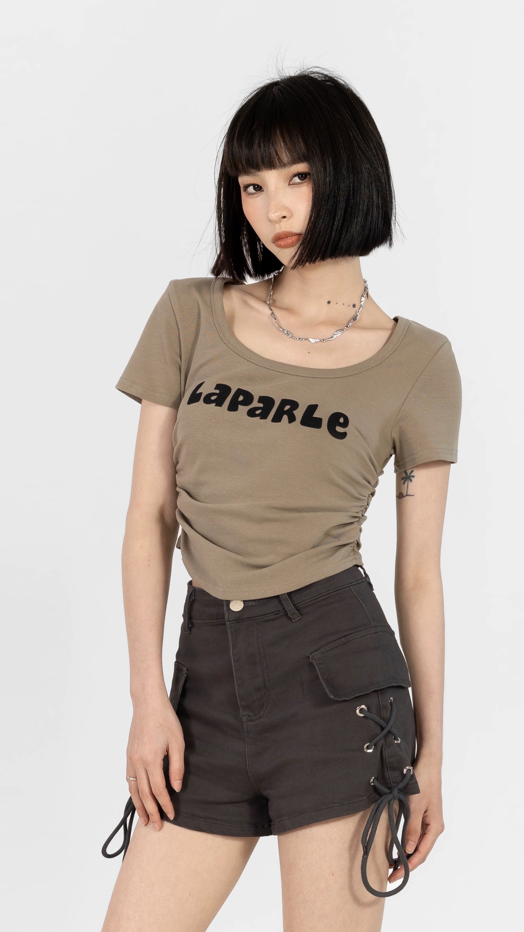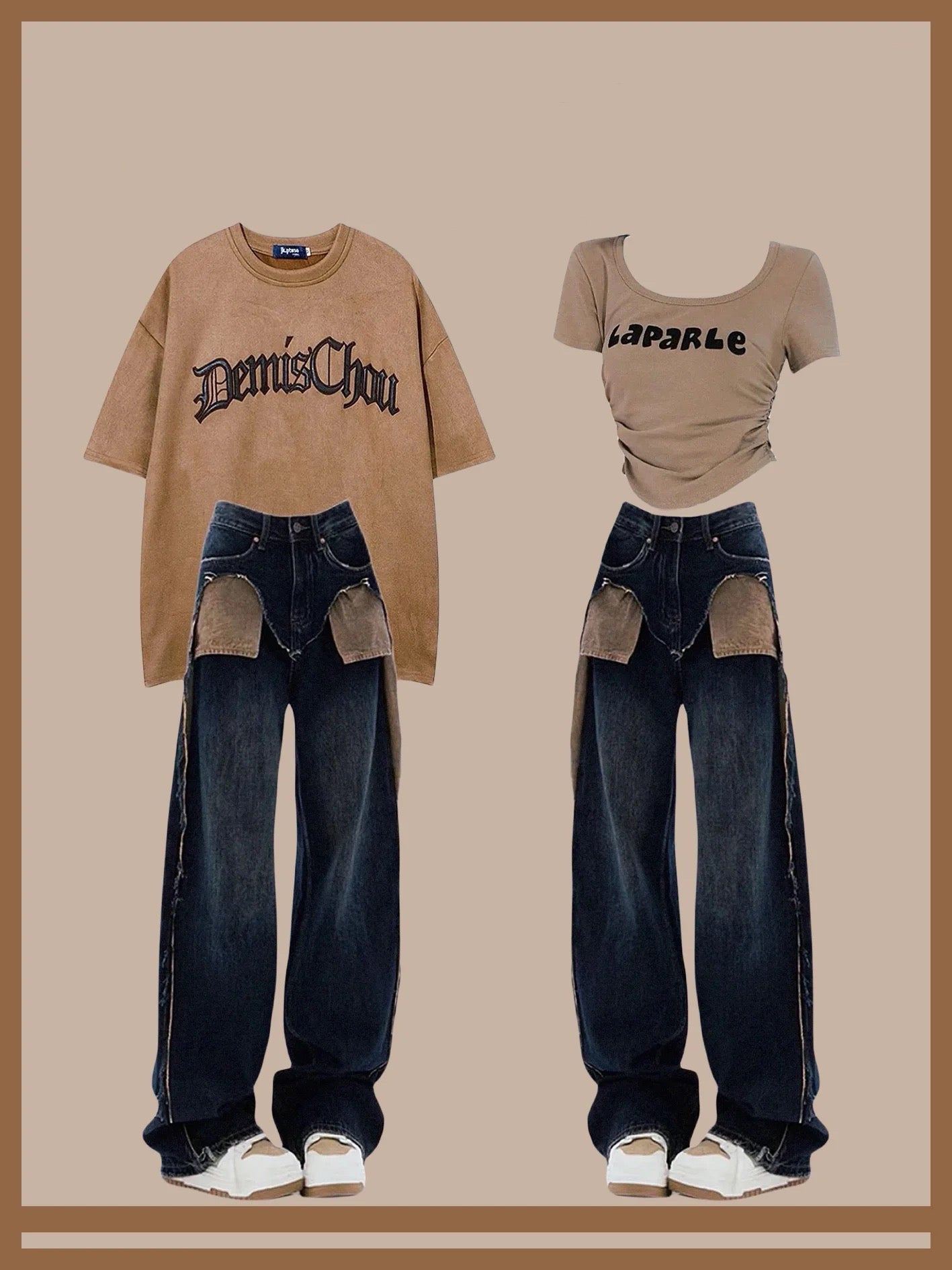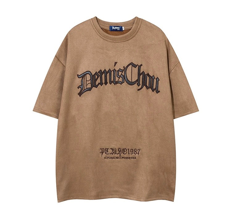 欧米式ヒップホップアルファベット刺繍スエードスエードスエード半袖Tシャツストリートbf風ペアルックTシャツ アメリカ風半袖Tシャツ女性夏ショートタイプスリムで不規則な襟元の大きいギャル上着番号ZT362