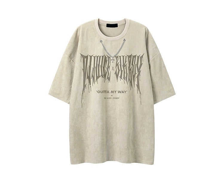 欧米復古ゴシック文字スエード半袖Tシャツ女性ゆったりカップルコーディネート自在上着番号ZT238