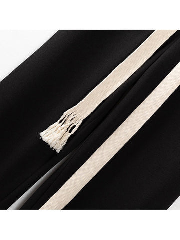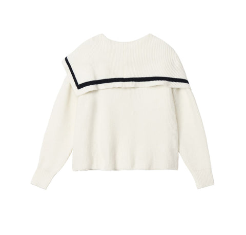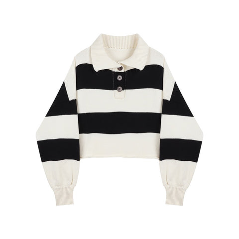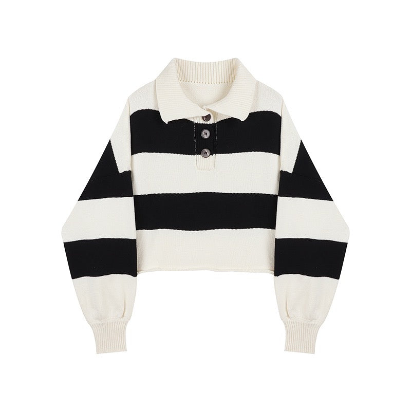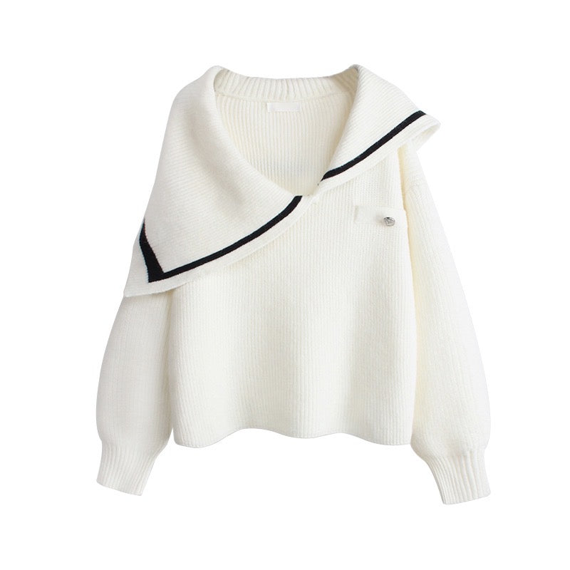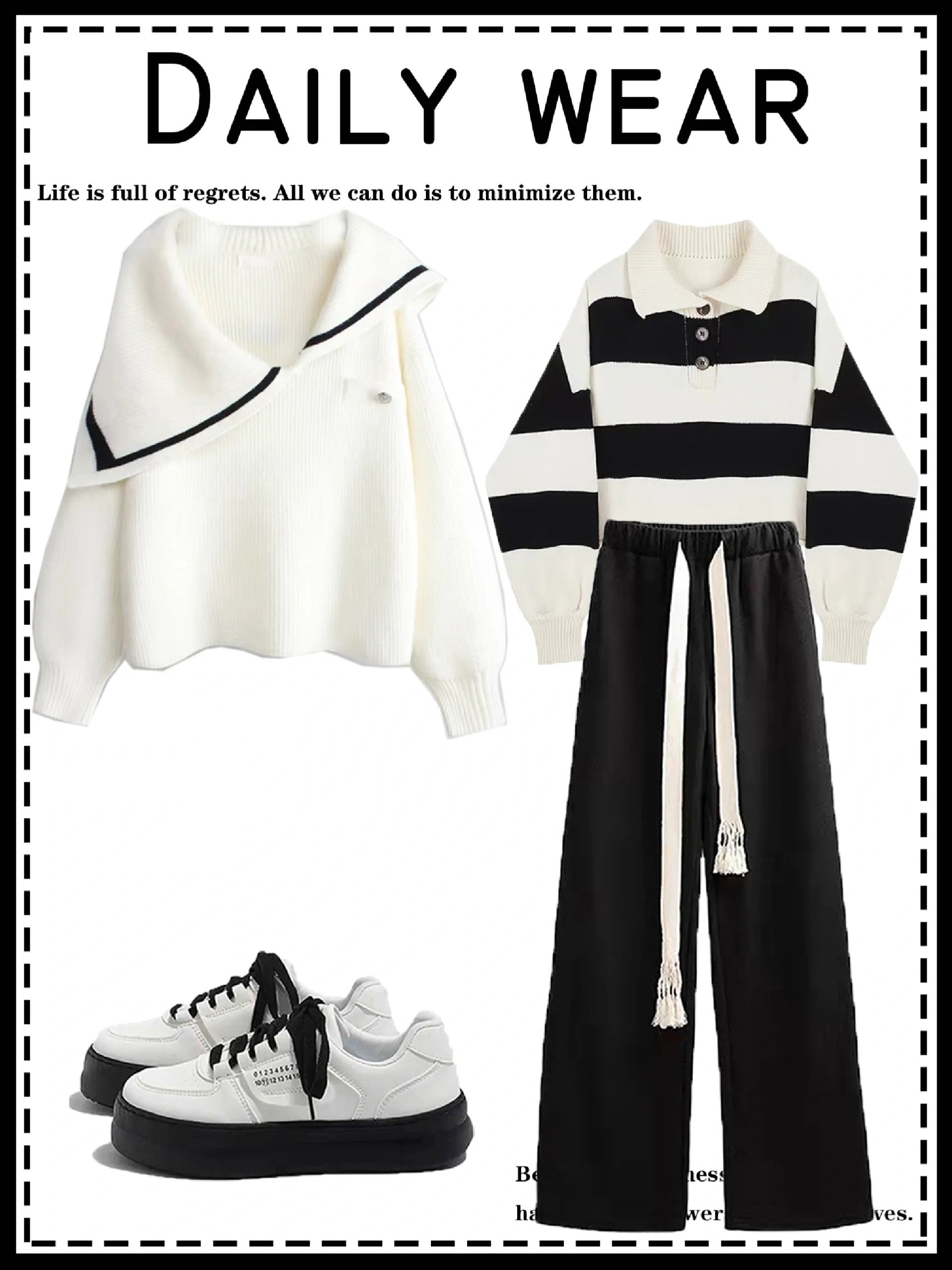 海軍襟オフショルダーホワイトセーター女性2023秋ニット上着 怠け者風ショートタイプセーター韓国風ゆったり痩せボーダーポロネックニットトップス 黒スポーツカーゴワイドパンツストレートカジュアルパンツ番号ZT59