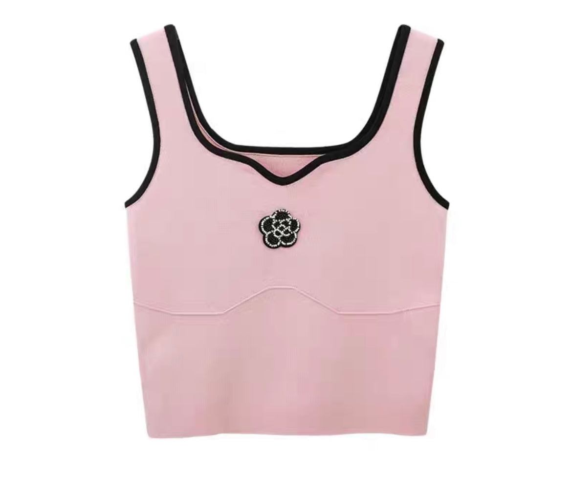 甘プリーツショートタイプ長袖Tシャツ婦人服夏2023新作異色デザインハート型スリムチュニック フランス式ユニークな椿花キャミソール女性用夏スーツインナー美背チューブトップインナー番号ZT469