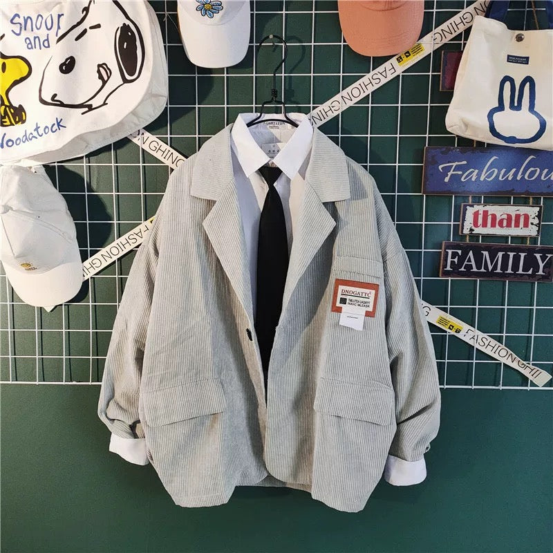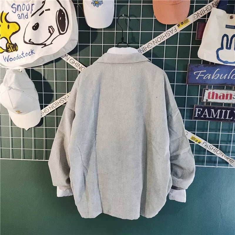 男女兼用のオーバーサイズコーデュロイジャケット - レトロなカジュアルスタイルでポケット付き番号ZT680
