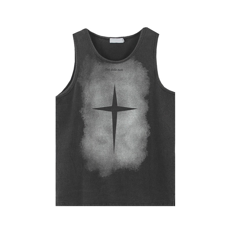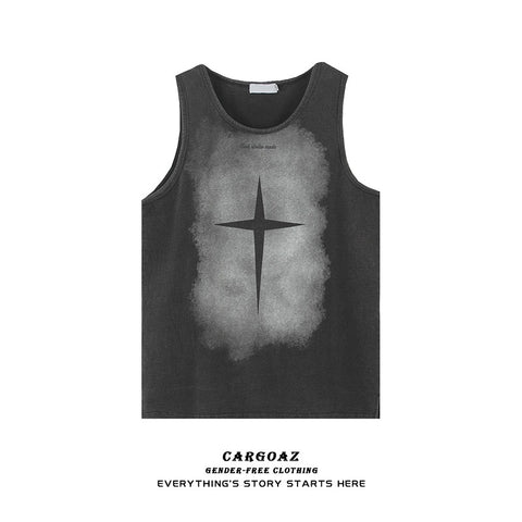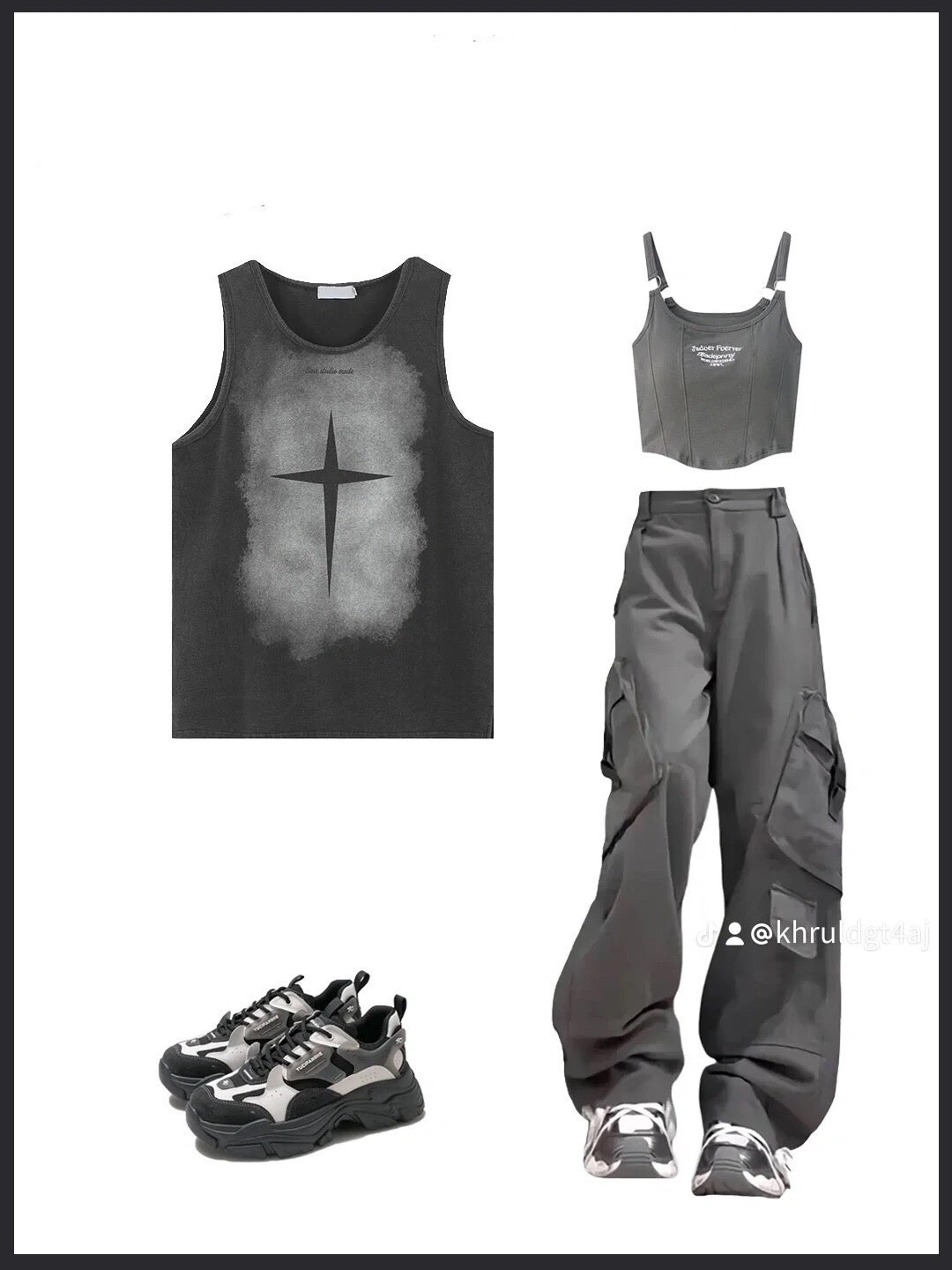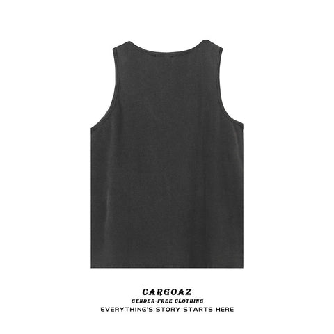 男女同じタイプの洗濯物使い古し風のゆったり袖なし丸首タンクトップ アメリカン機能デザイン感スリムカーゴパンツゆったりワイドパンツ番号ZT90