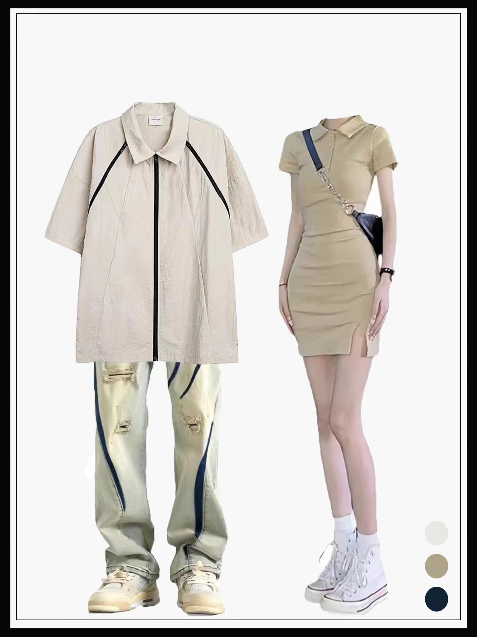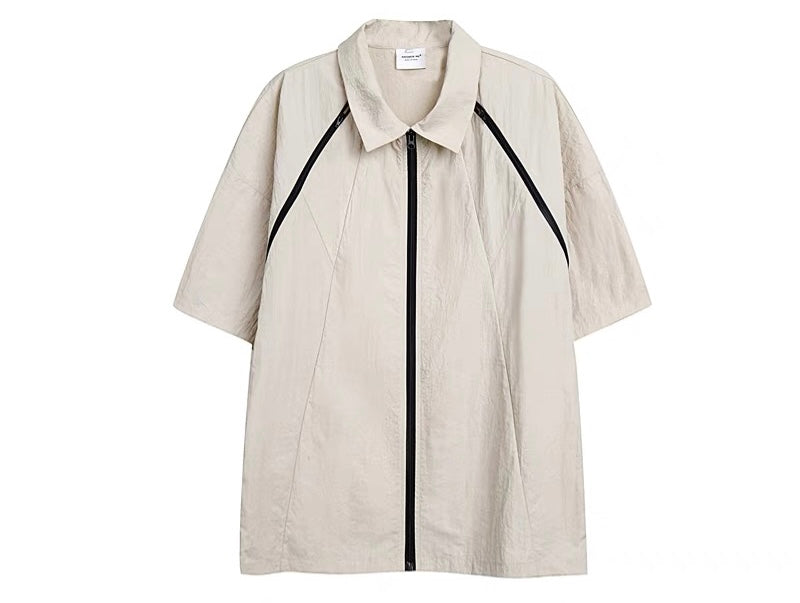 男女春夏新作半袖シャツ切り替えブラック半袖カジュアルトップジップシャツ番号ZT264