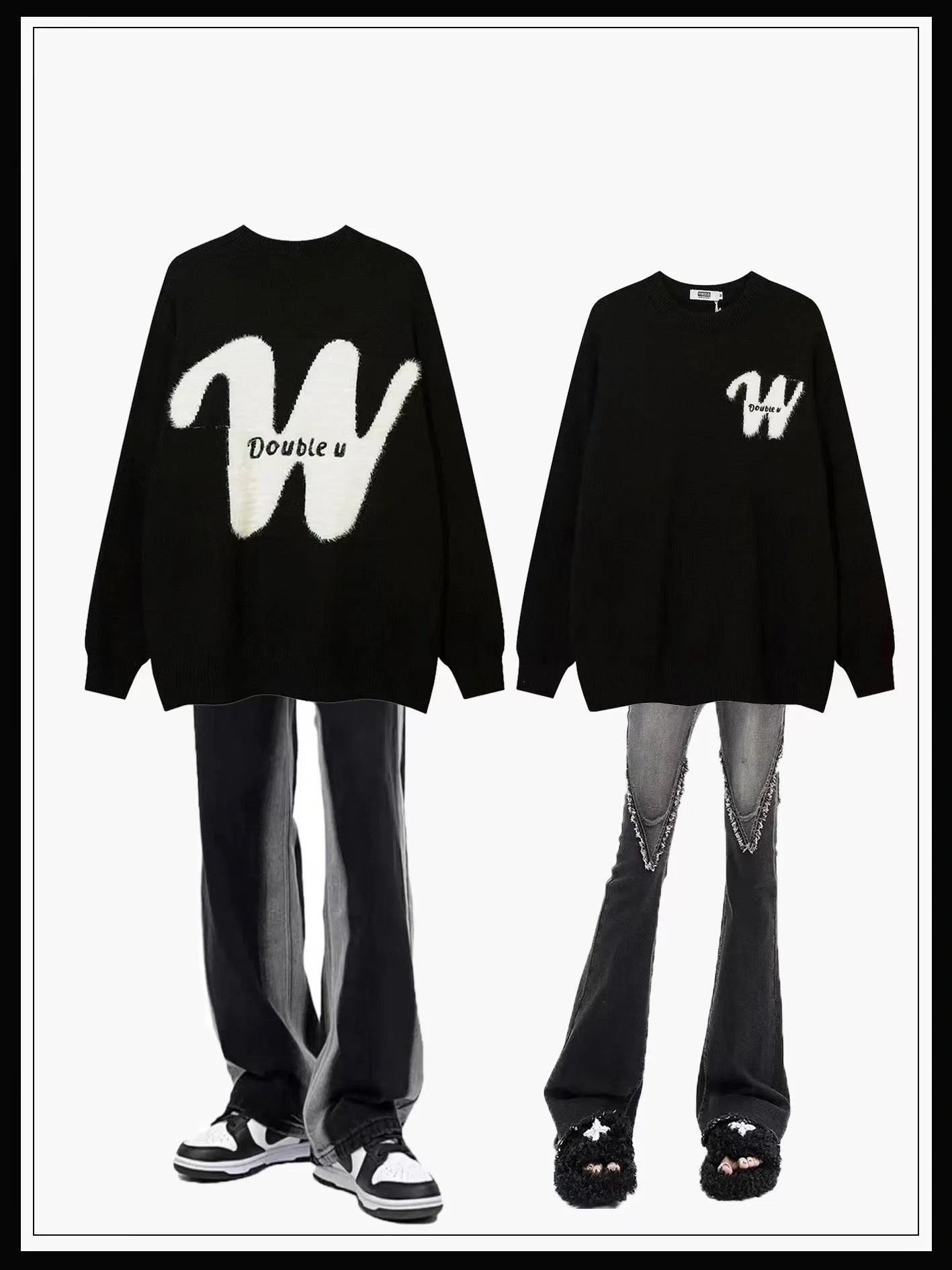 秋オリジナルフロッキー文字ゆったりニットセーターペアルトップスコーディネート自在番号ZT374