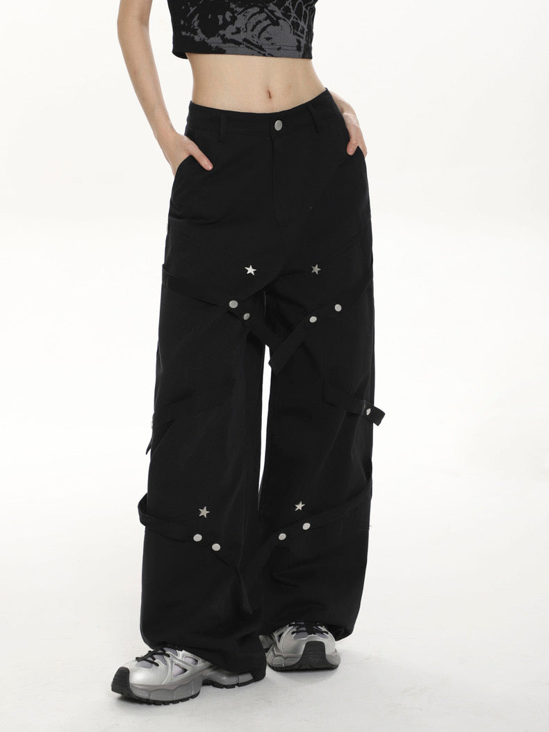 秋新作アメリカ式ストリートトレンドジーンズコート女性ヒップホップホットダイヤモンド/ アメリカ式スイートクールクラシックキャミソール女性夏スタイル純欲望風スイートノースリーブキャミソール/アメリカンビンテージ高ウエスト薄手ブラックカーゴカジュアルパンツ女性初秋コーディネート自在ゆったり痩せて怠惰なワイドパンツ番号ZT485