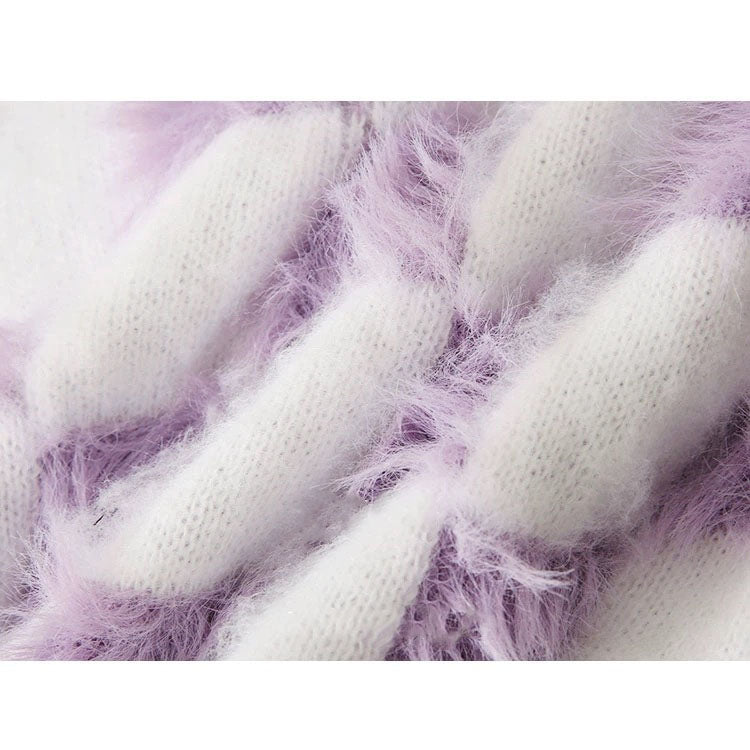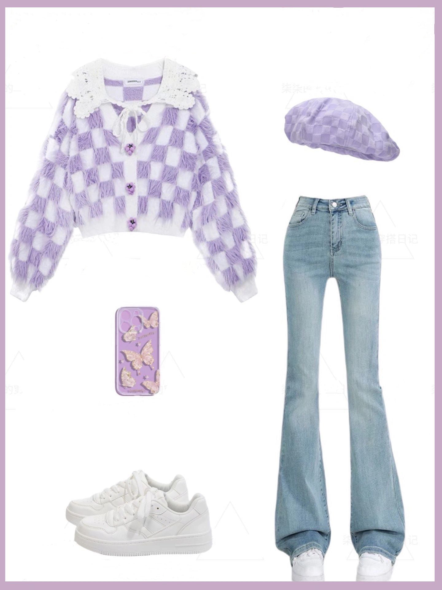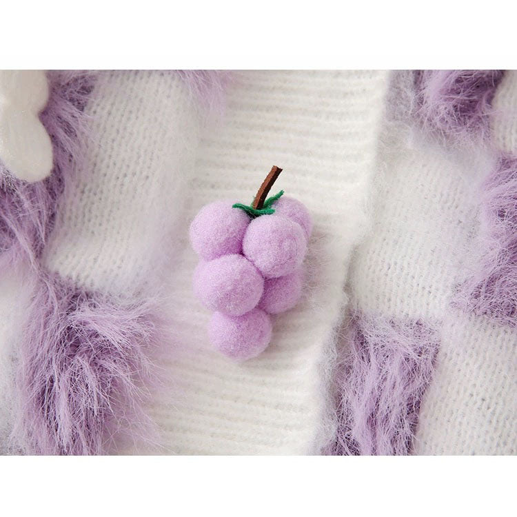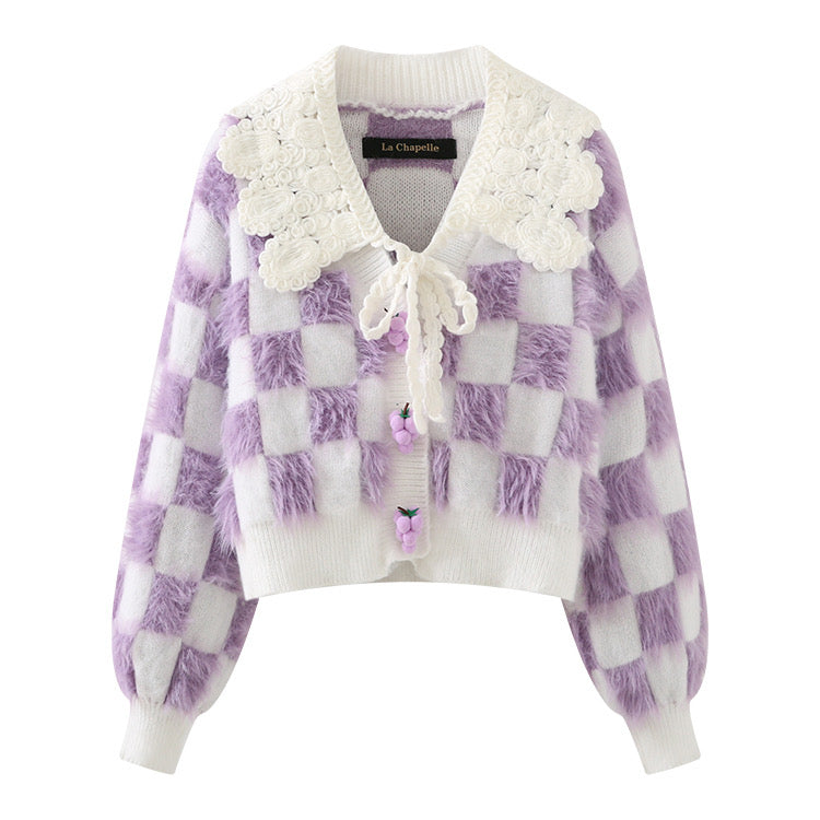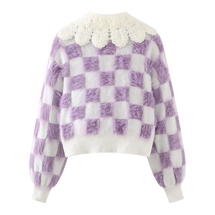 秋新作パープルチェックセーターカーディガン女人形襟スイートなコート番号ZT509