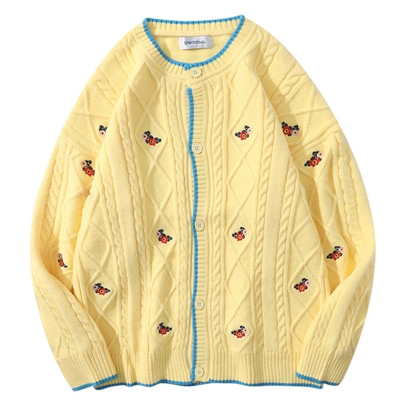 秋日系重工刺繍麻柄カーディガンセーター男女ゆったりカップルカジュアル長袖コート番号ZT418