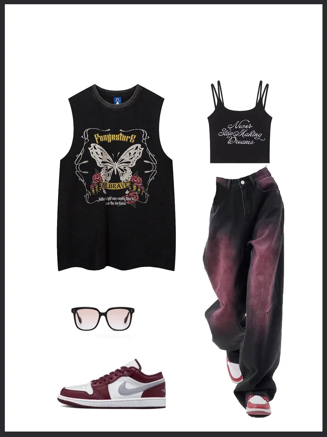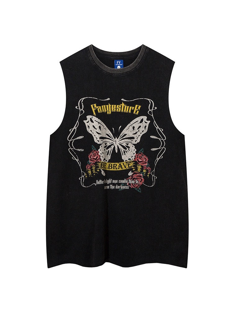 穴あき蝶プリントタンクトップアメリカ復古oversizeヒップホップペアトップス番号ZT172