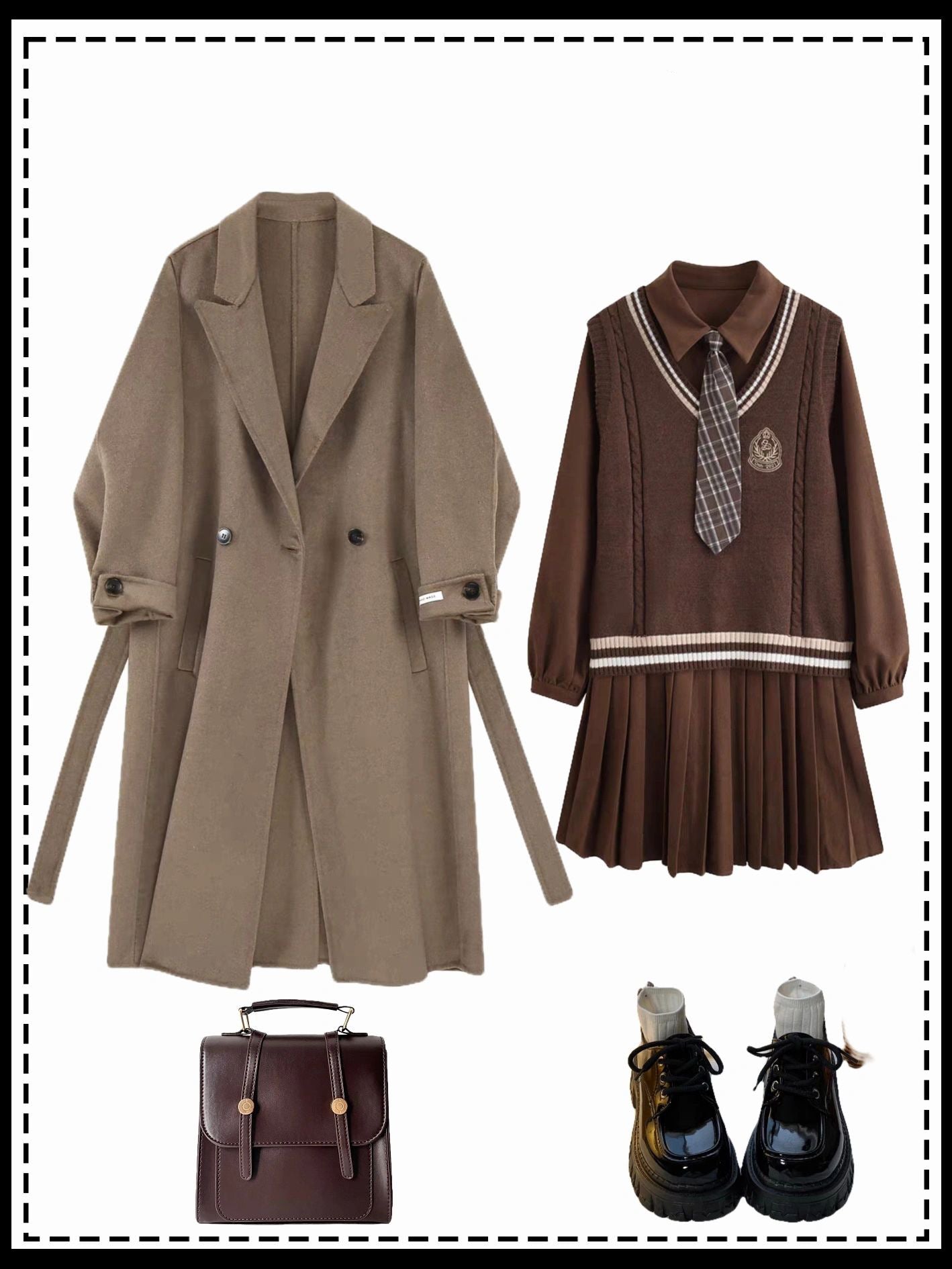 紐結びカシミヤ両面ラシャコート女性秋冬新作ゆったりロング丈ラシャコートカレッジ風タンクトップセットワンピース婦人服秋冬2023新作2点セットスカート番号 ZT556