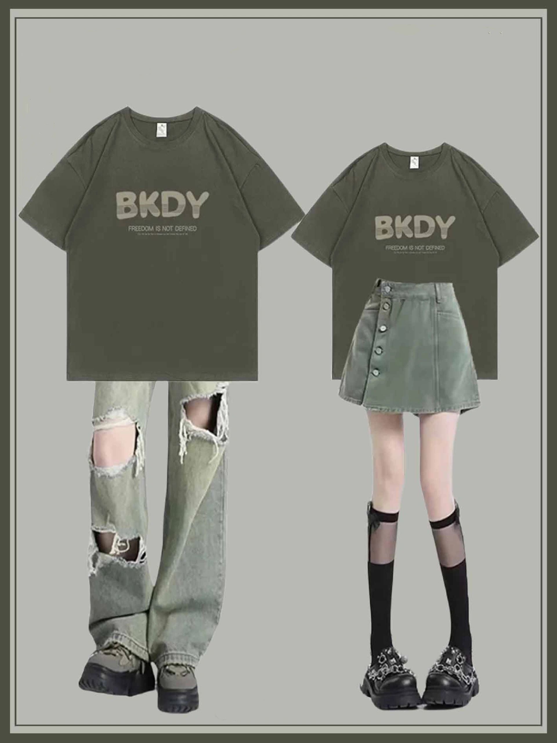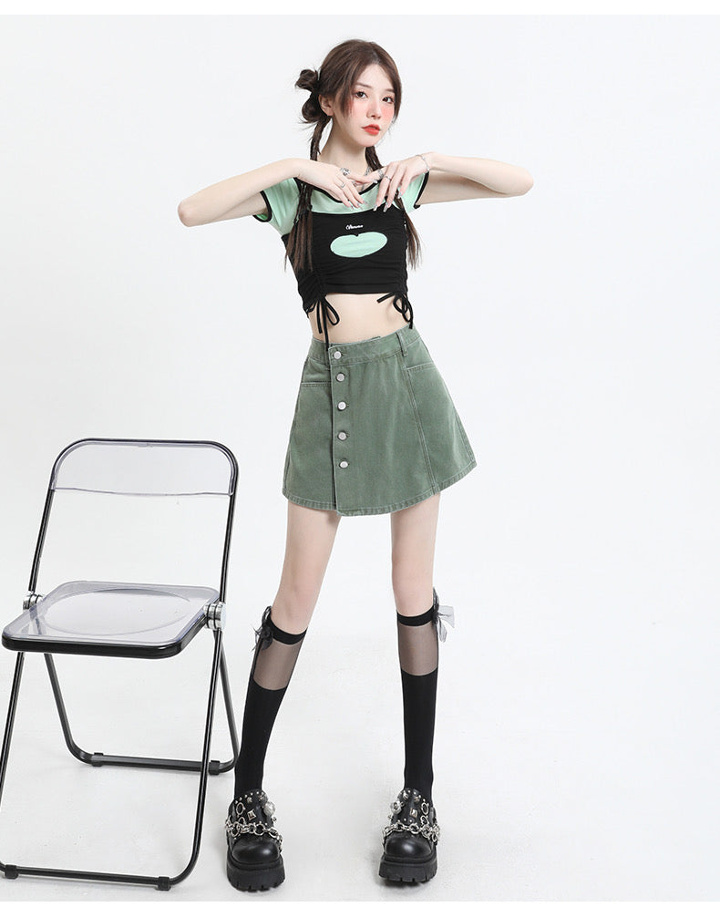 純綿肩立て半袖Tシャツ夏新作ゆったりカジュアルコーディネート自在上着/アメリカンヴィンテージ高腰穴加工ジーンズ夏の薄手タイプ2023新作ゆったりとしたドレープ感ワイドレッグスリムパンツ/ハイウエストデニムミニスカートレディースカートパンツ夏の薄手タイプ2023年ニュータイプ着痩せa字ヒップを包むスカート番号ZT381