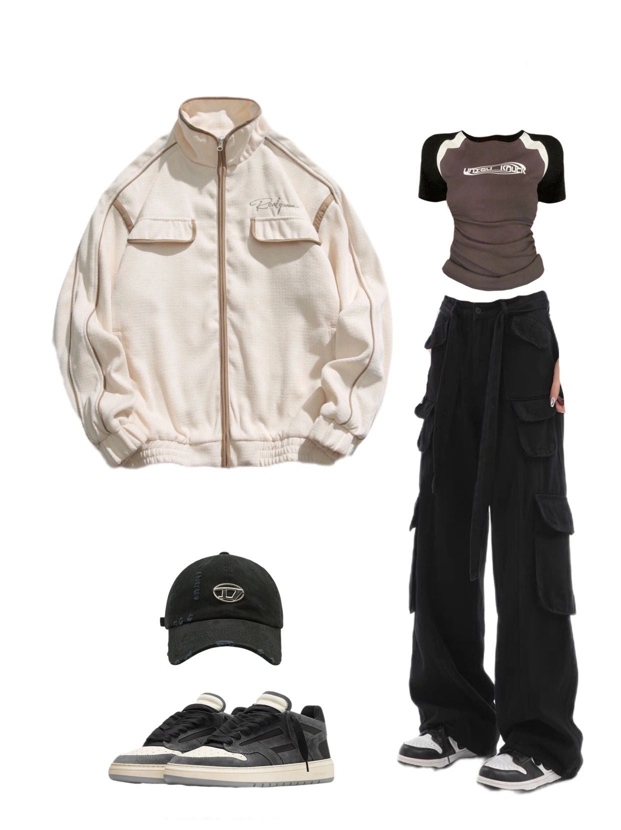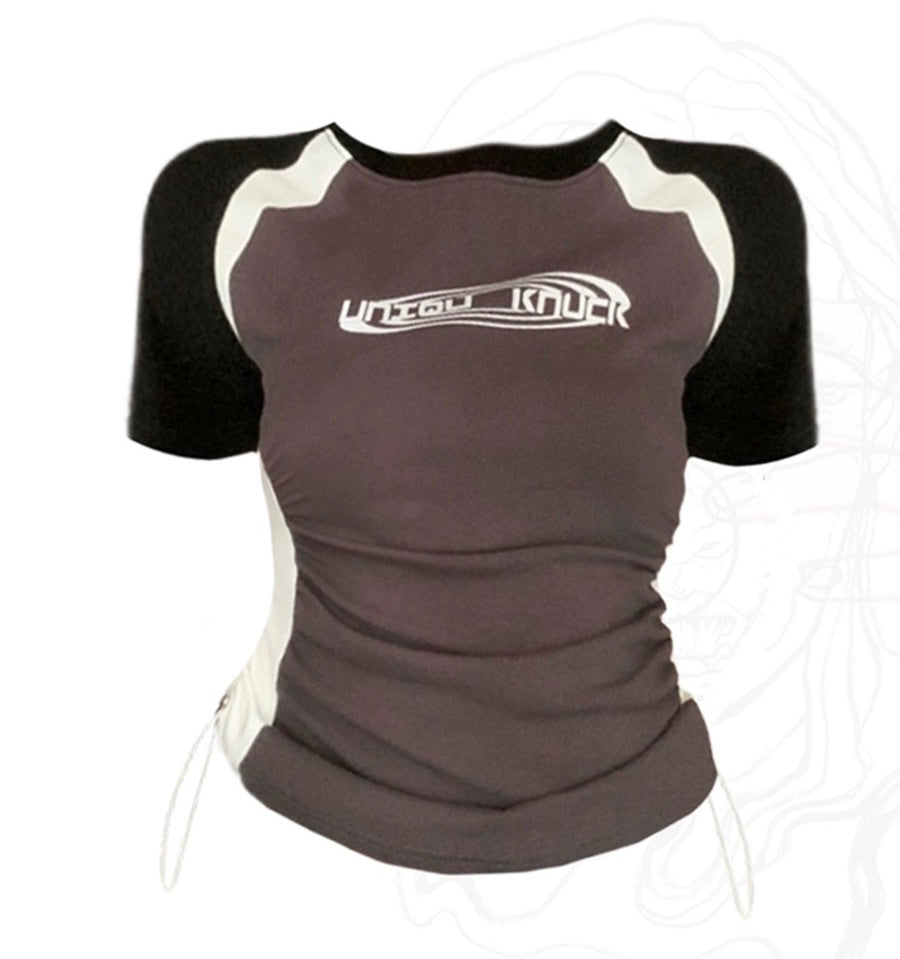 縁取りコントラストカラー高級感のあるカーゴジャケットアメリカ風復古ゆったりカジュアルなカップルコートバカ格好良い街 ビッグサイズ太った妹アメリカ式ビンテージ風肩入れ半袖Tシャツ女性ショートタイプスポーツ夏ストラップギャル正肩上着番号ZT430