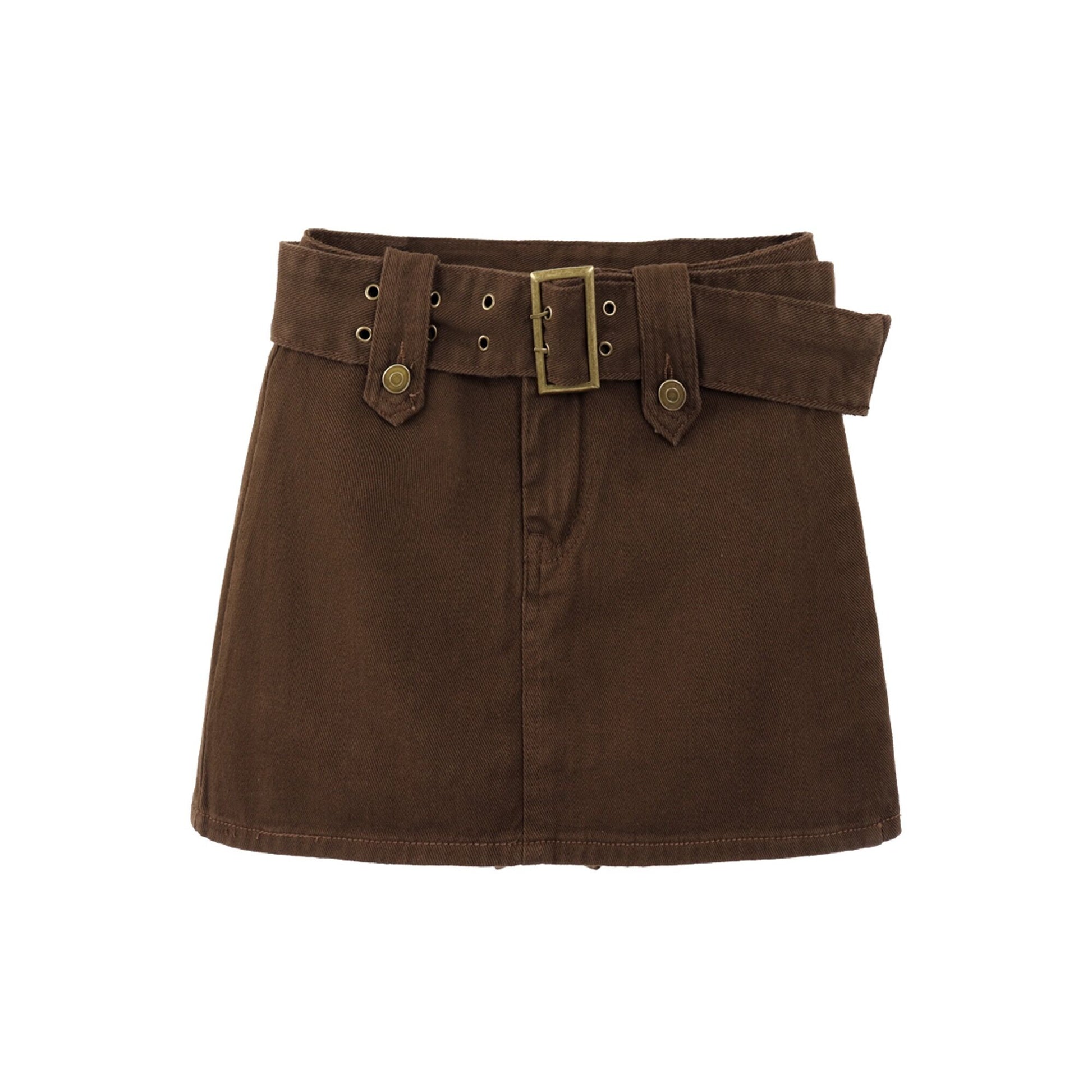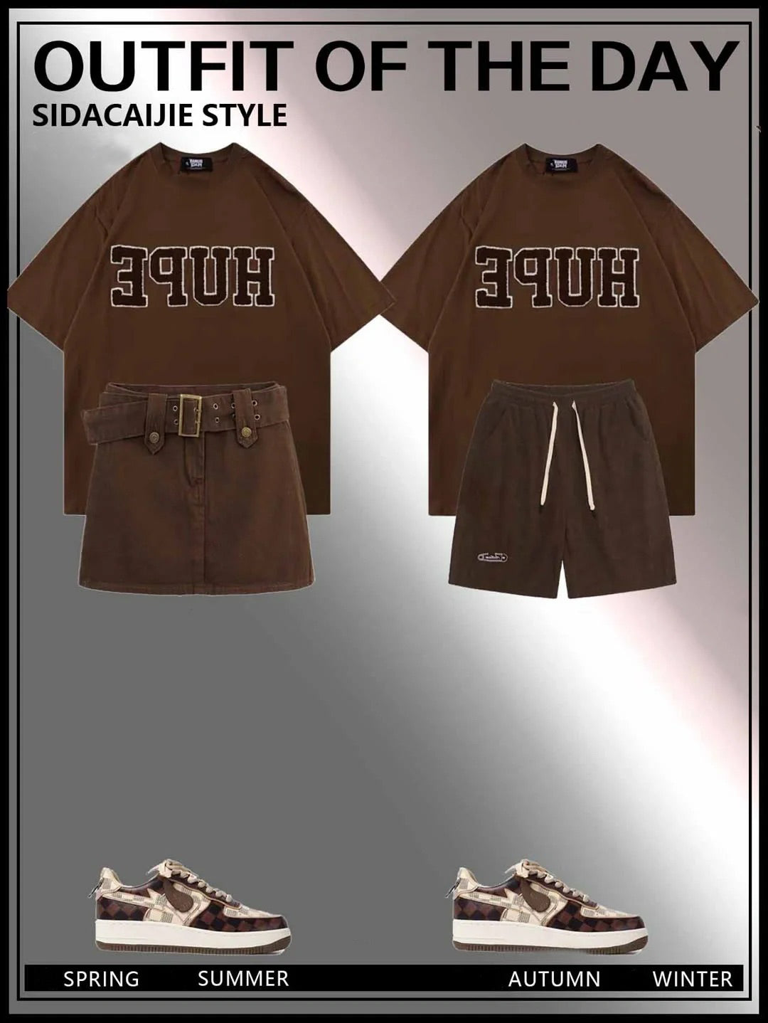 美復古カップルワイド半袖Tシャツ/アメリカクラシック着痩せ女性用バッグヒップブラウンスカート/夏クラシックゆったりコーディネート自在カジュアルパンツ番号ZT43