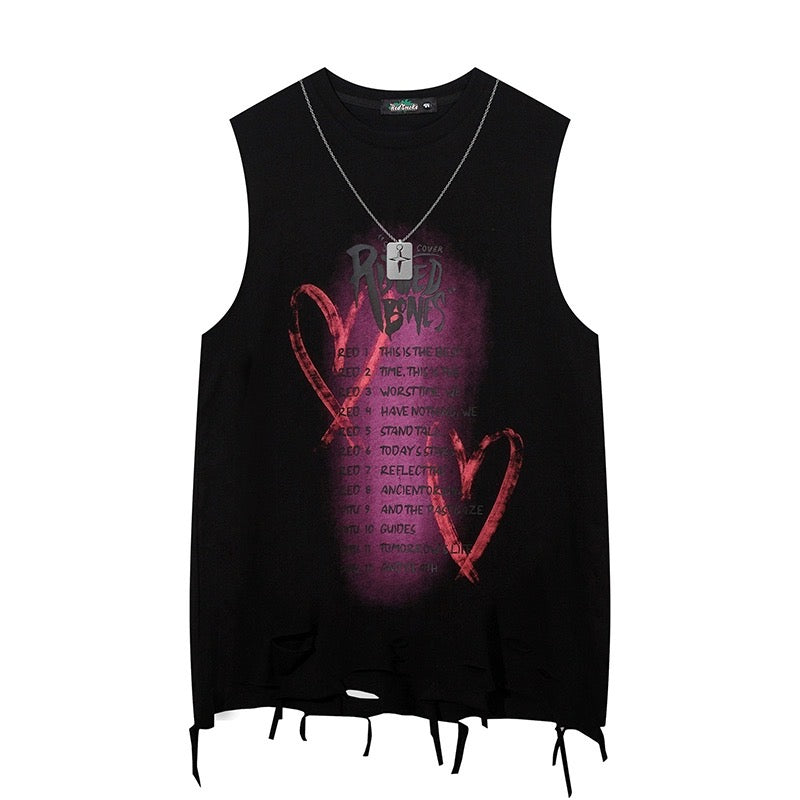 落書きハート型パンチングノースリーブバックアメリカンヒップホップカップルteeシャツヴィンテージストリートダンスt夏ZT204