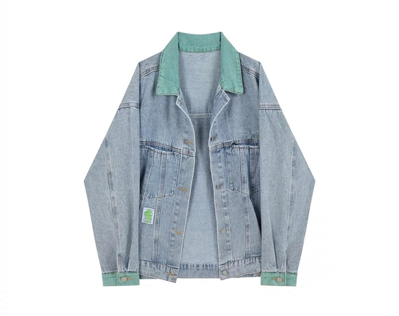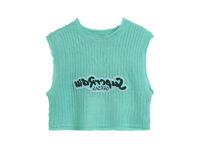 香港風復古ジーンズコート婦人服秋新作ゆったりグリーン袖口上着デザインジーンズコート/グリーンキャミソール女性夏インナーの上に着るアルファベット刺繍ノースリーブショートカットソートップス番号ZT449