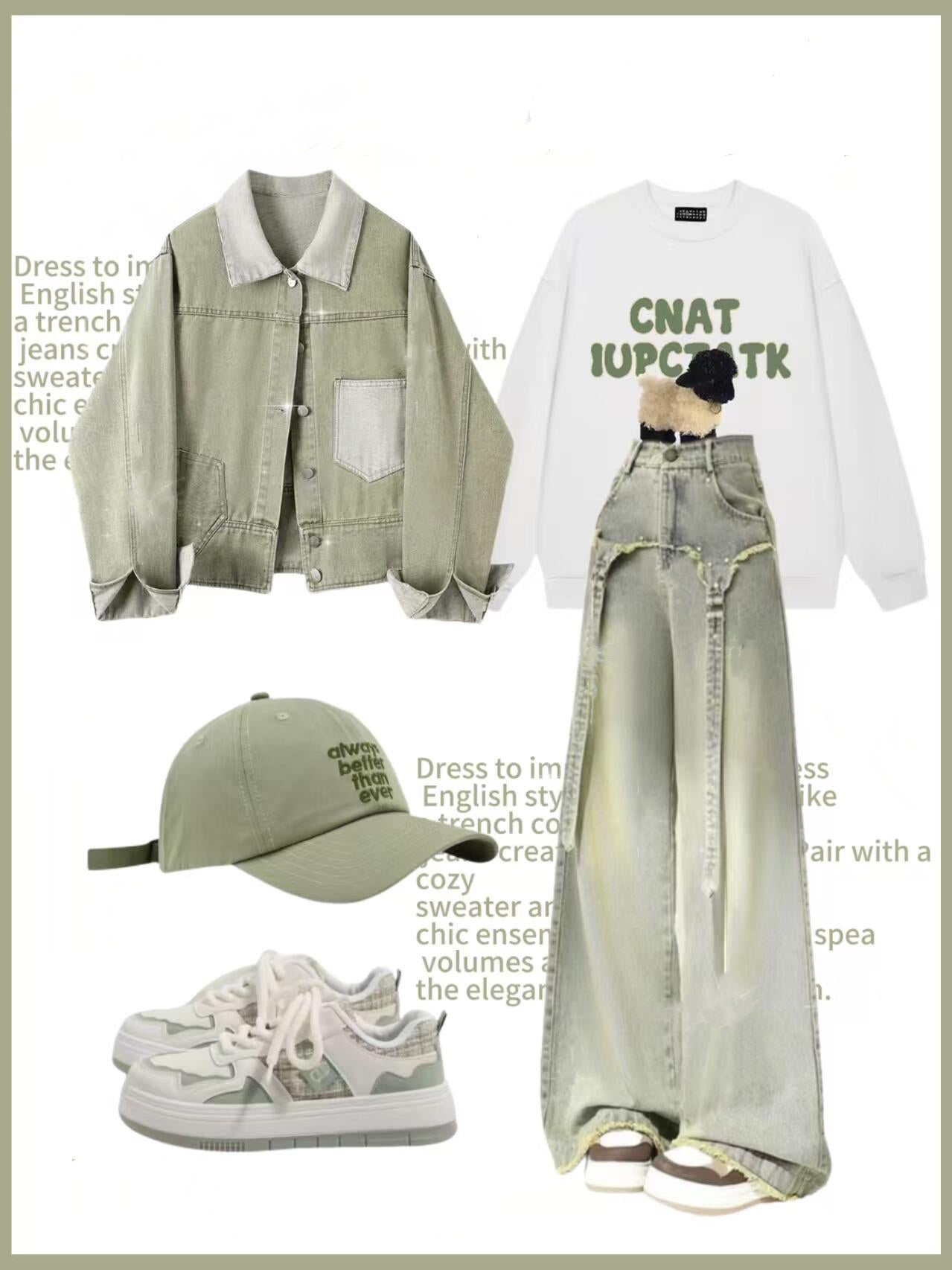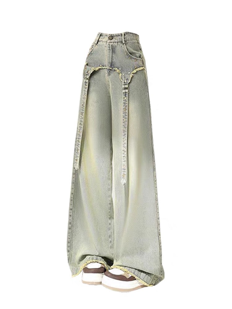 高級感ラウンドネックスウェット レディース 新作 トレンドブランド アメリカンヴィンテージ風 ゆったり 個性的トップス/アメリカンハイストリートVibeスタイル フリンジ切り替え ワークパンツ レディース INSトレンド ハイウエスト スリム効果 ストレートデニムパンツ番号ZT664