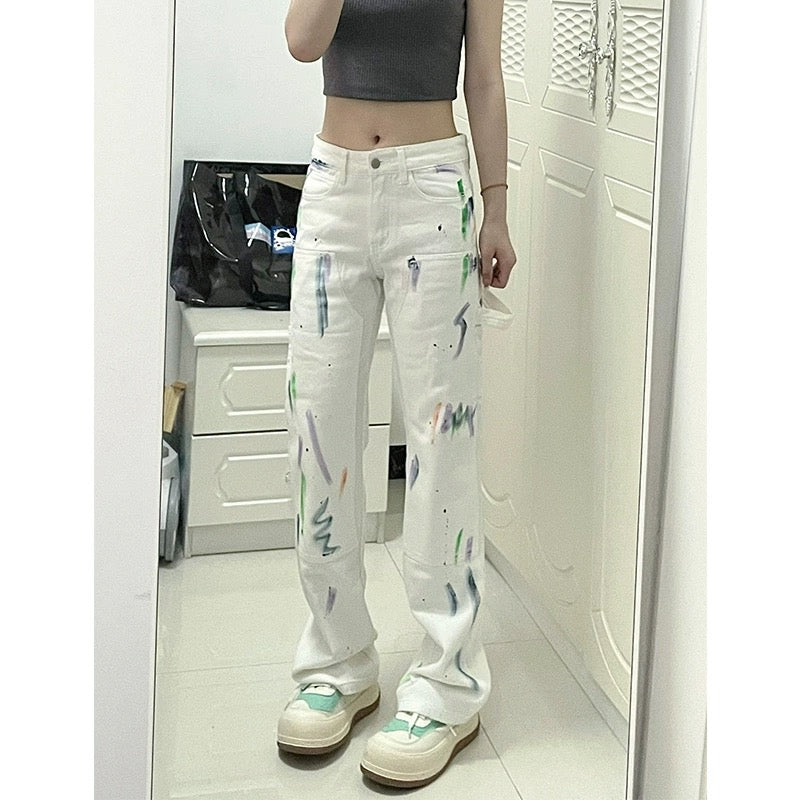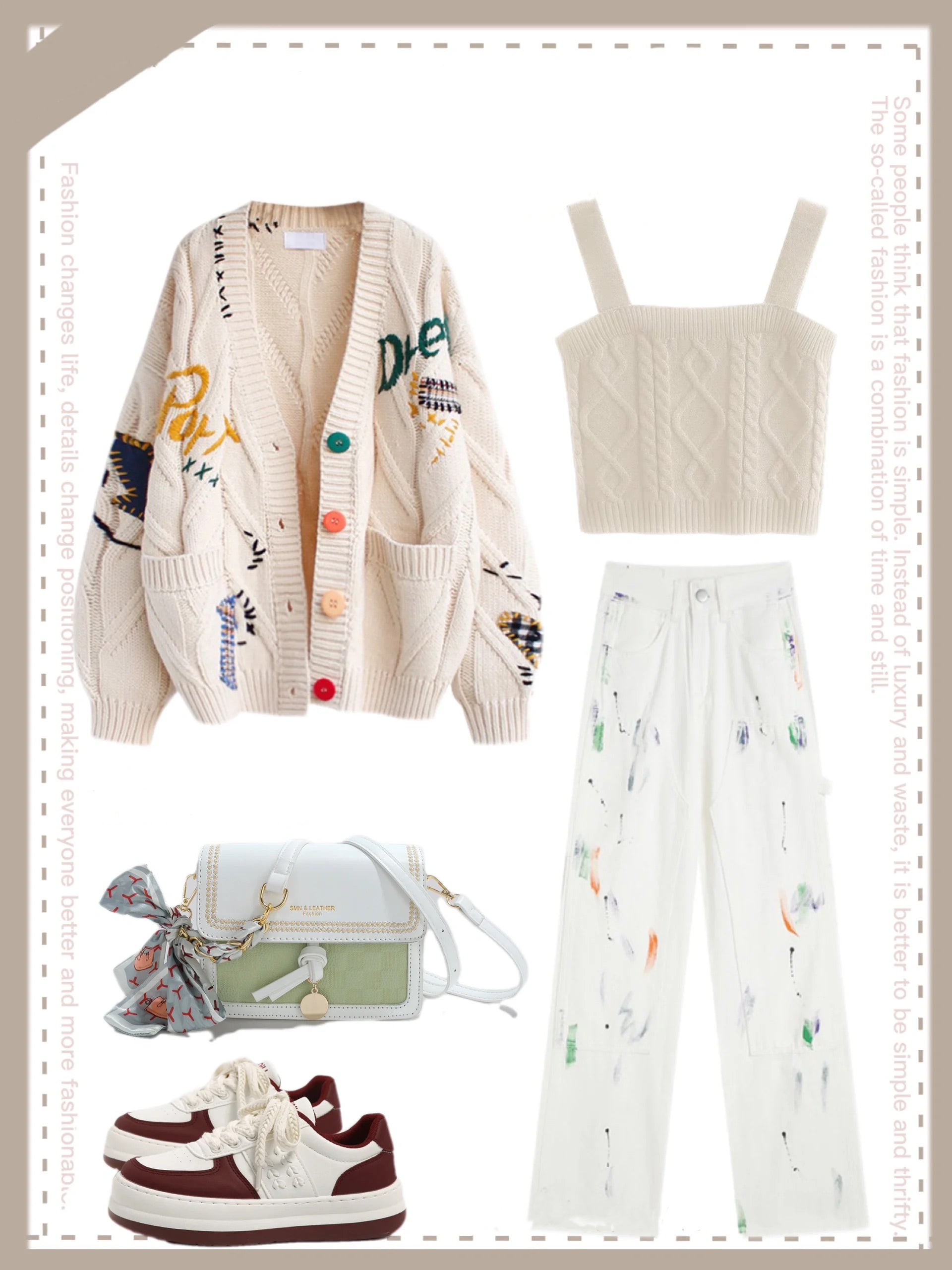 ユニークな学院風ニットカーディガン年齢を下げるセーターコート/ニットガーリーキャミソール2024春夏新作韓国風スリムショートタイプツイードセーターノースリーブ上着/ホワイトカラージーンズ女高街新作ハイウエストゆったりストレートパンツワイド脚番号ZT330