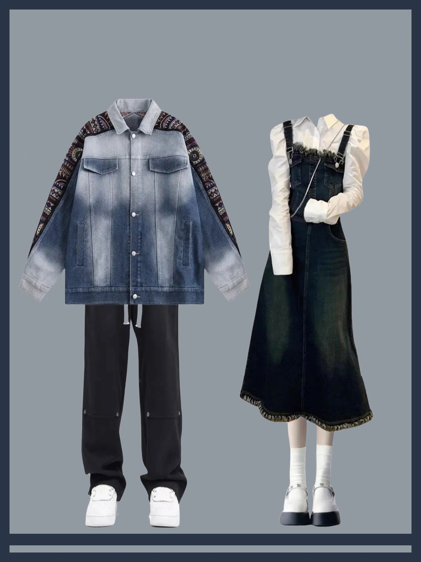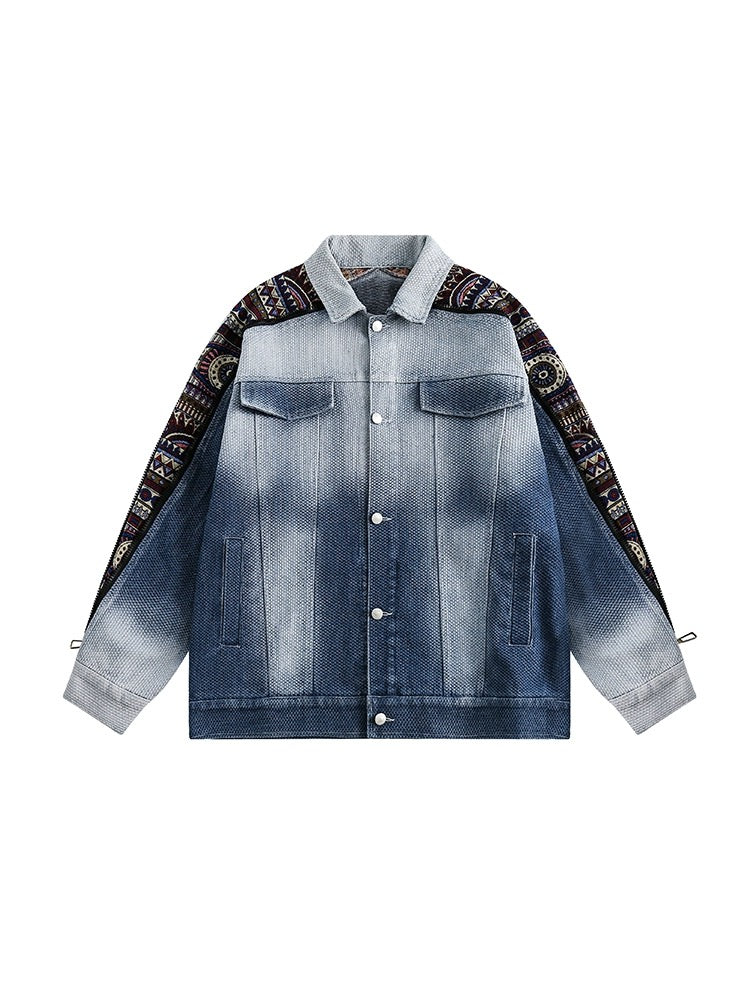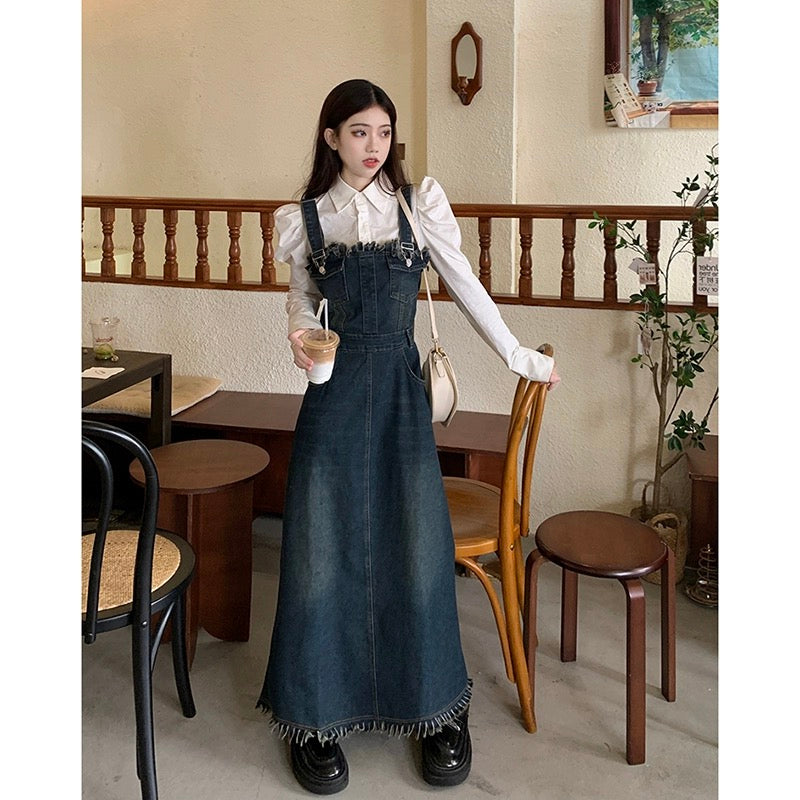 切り替えグラデーションウォッシュ加工スキッパーデニムジャケットクラシックvintageコート/デニムキャミソールワンピースレディース春2024新作デザイン感フランスウエストシェイプ細見せロングスカート番号ZT387