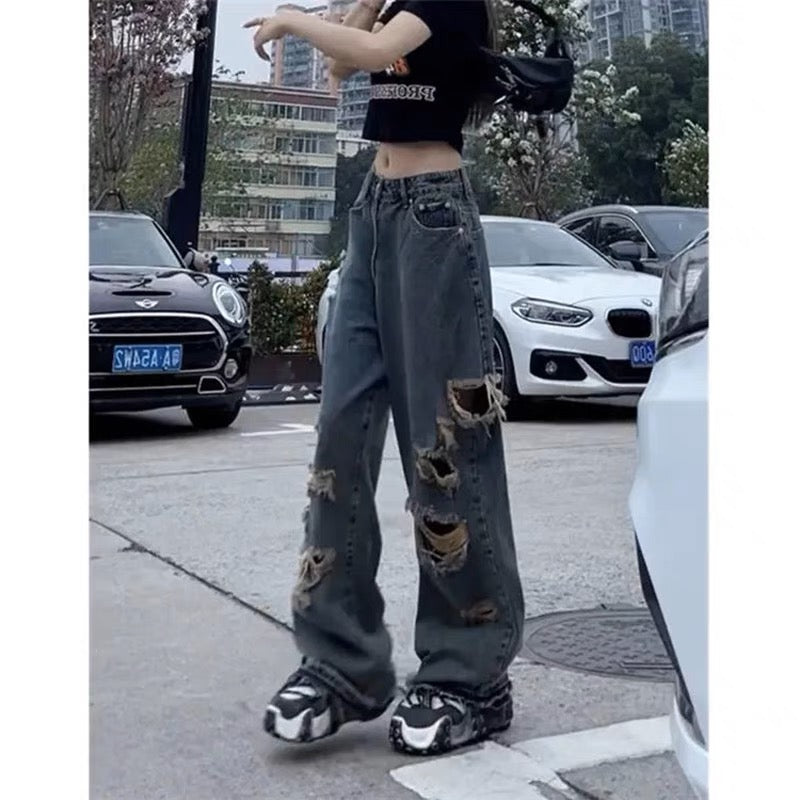 ファッションブランドのデザインカーディガンパーカーレディース秋ゆったりカジュアル学生コート/アメリカンビンテージ乞食穴あきジーンズ女夏ハイウエストストレートワイドレッグスリッパズボンハイストリートinsトレンド番号ZT524