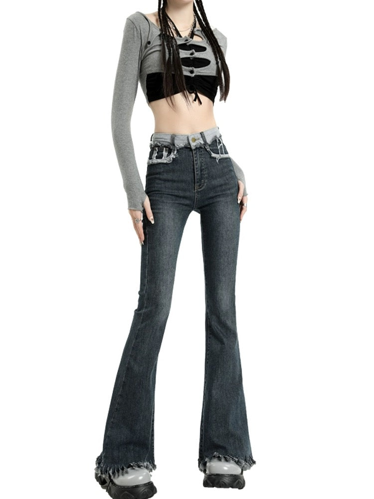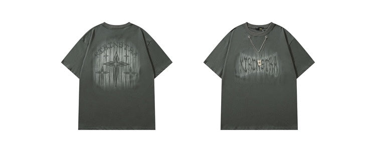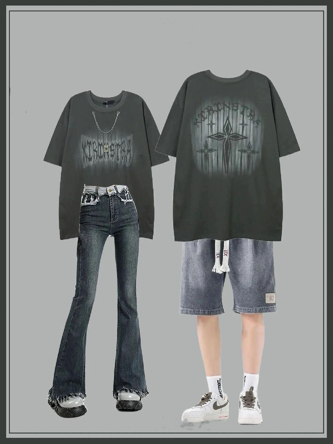 2023復古半袖Tシャツゴシック梵母落書き純綿夏トレンドカップル/2023レトロマイクロフレアパンツレディースデザインハイウエストスリムパンツ番号ZT398