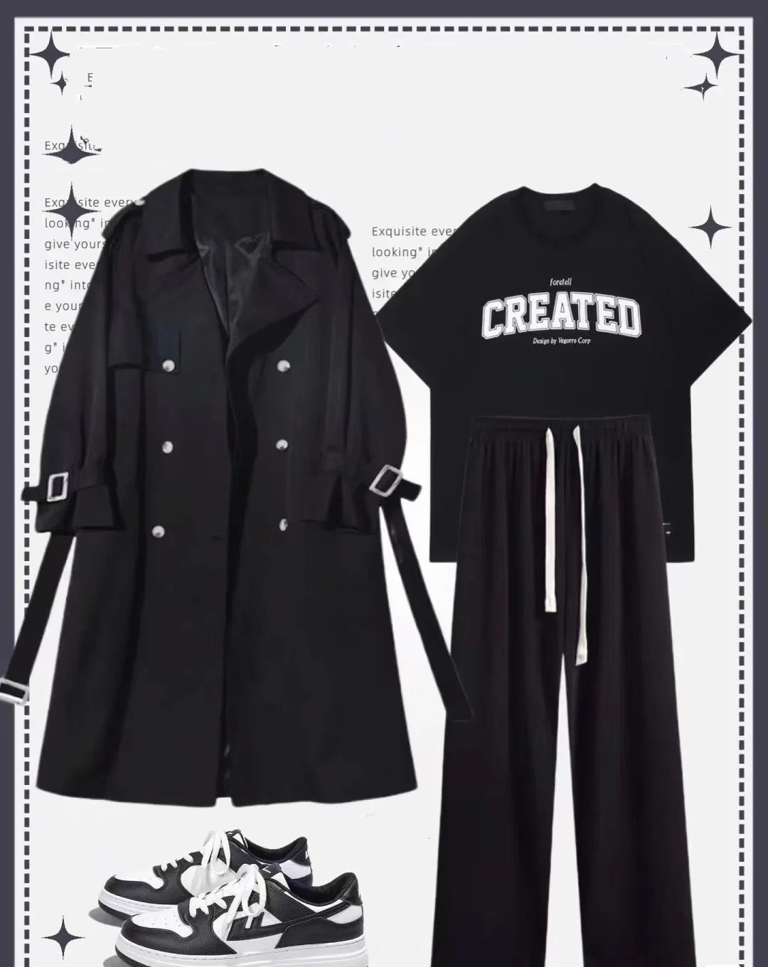 2023新作ミドル・ロングタイプイングランド気質カジュアルコート ワイドパンツ女性春秋2023新作韓国風ハイウエストゆったりカジュアルパンツ番号ZT54