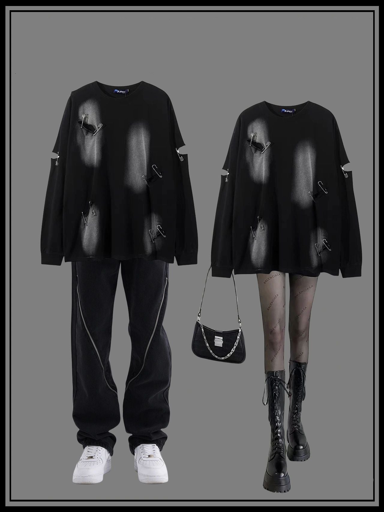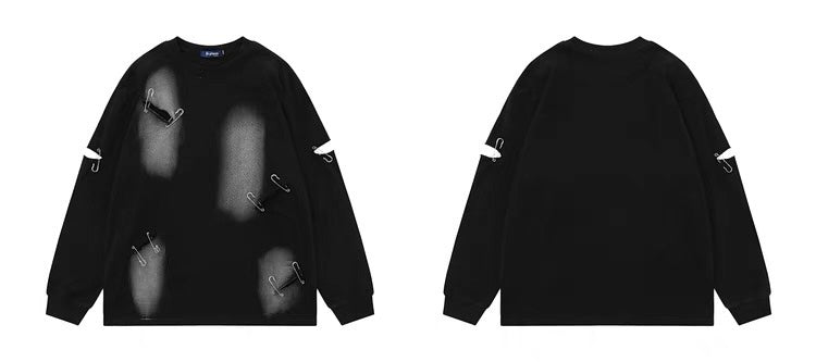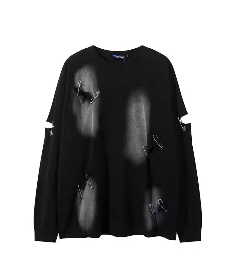 欧米ヒップホップ穴付きボタン長袖Tシャツトレンドタグ高い街ダラダラ風カジュアルコーディネート自在Tシャツ番号ZT620