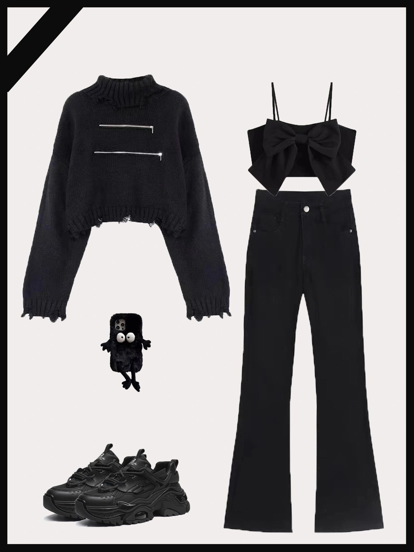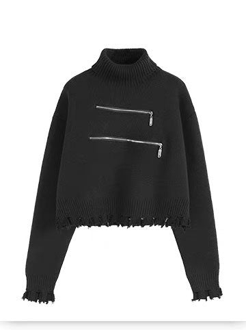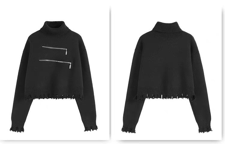 秋冬新作ブラックファスナースリムインナーシャツハイネックフリンジショートタイトセーター女性番号ZT539