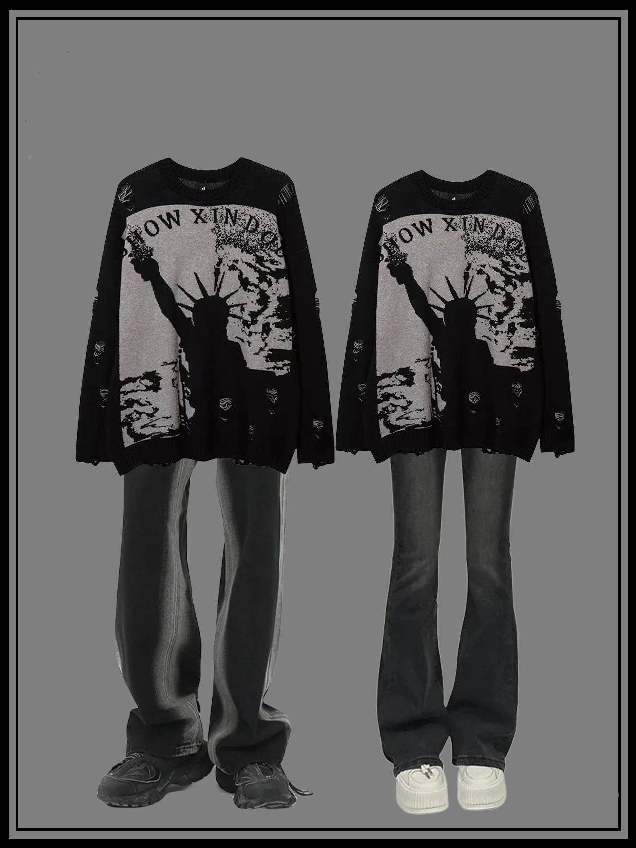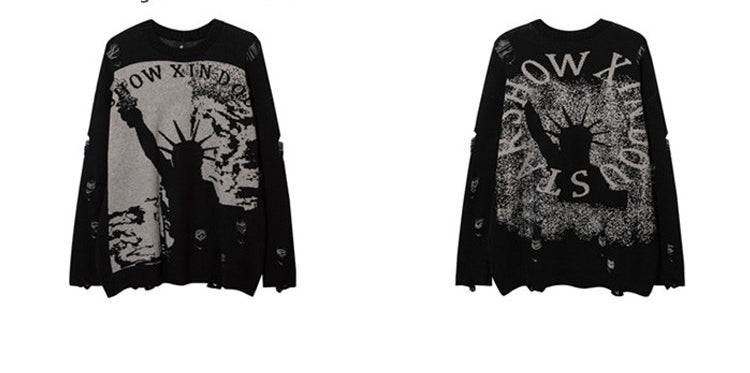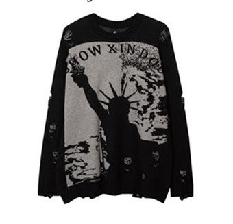 穴あきセーターハイストリートhiphop男女アメリカンoversizeゆったりニット番号ZT619