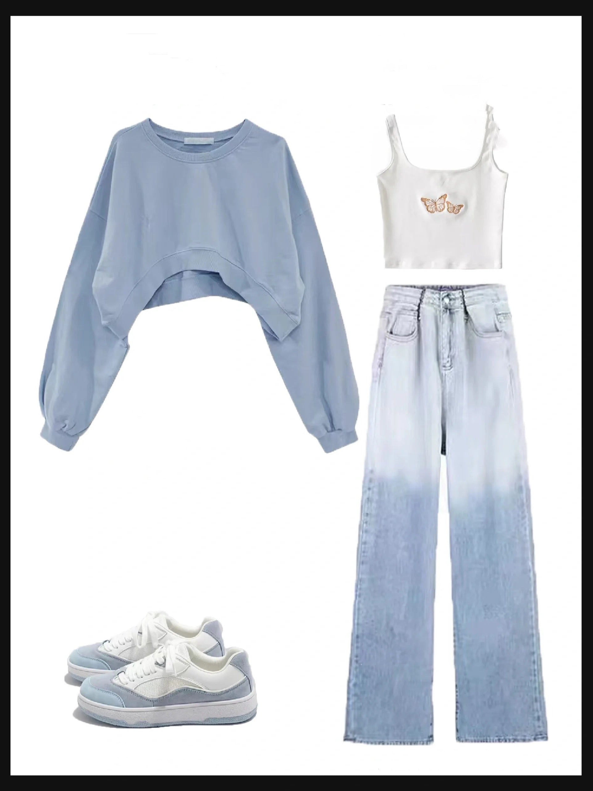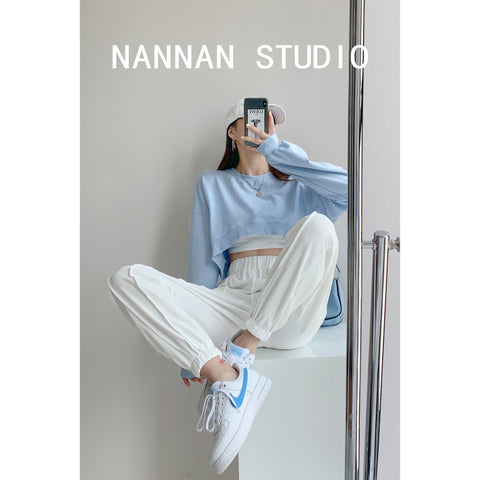 Babyブルーゆったり踊るおへそスウェットパーカー女春夏スポーツ長袖上着 グラデーションデニムワイドパンツ番号ZT50