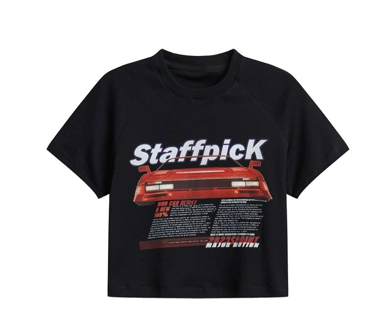 hiphopヒップホップなギャル風肩立て半袖Tシャツ夏の新作アメリカ風レトロなショートタイプおへそを露出して着痩せする上着/2023欧米ハイストリート半袖Tシャツ復古ダーク系oversizeゆったり半袖上着番号ZT400